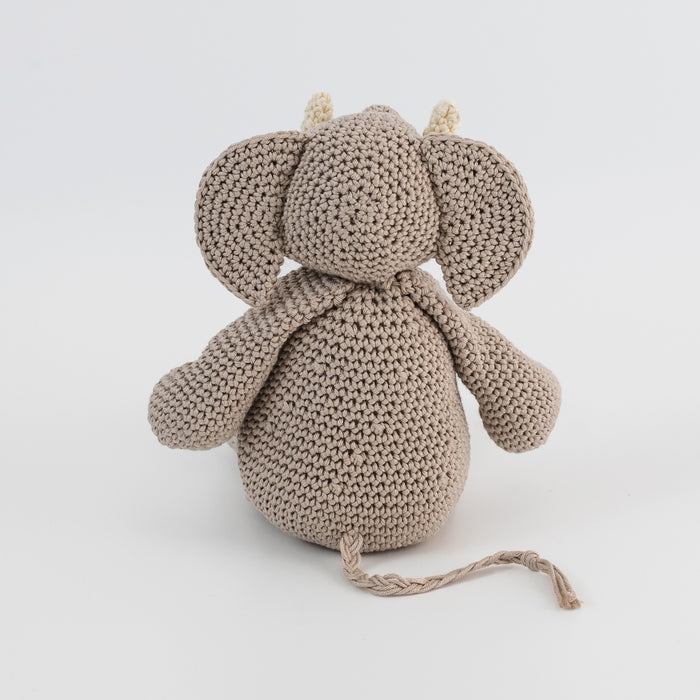 Hope Elephant easy crochet kit. We adore Hope's curly trunk, large ears and adorable tusks. Hope Elephant is perfect for comforting hugs and makes a majestic addition to any safari-themed collection.