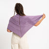 All the patterns are made in our Soybean Cotton Yarn. Photographs show the Beginner Cardigan in navy blue, the Easy Striped Shawl in lavender, the Lacy Top in wheat and the Fishermans Ribbed Cardigan in teal.