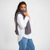 The photographs show the Scarf in Beautifully Basic Slate Grey (colour A) yarn.
