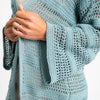 Amelia Cardigan Crochet Kit. The Amela Cardigan is a long, loose cardigan with an open boxy fit, or closer fitting when tied around the waist. The cardigan is ideal for those evening drinks with friends, or a relaxed everyday look to add a touch of elegance to your daytime style.